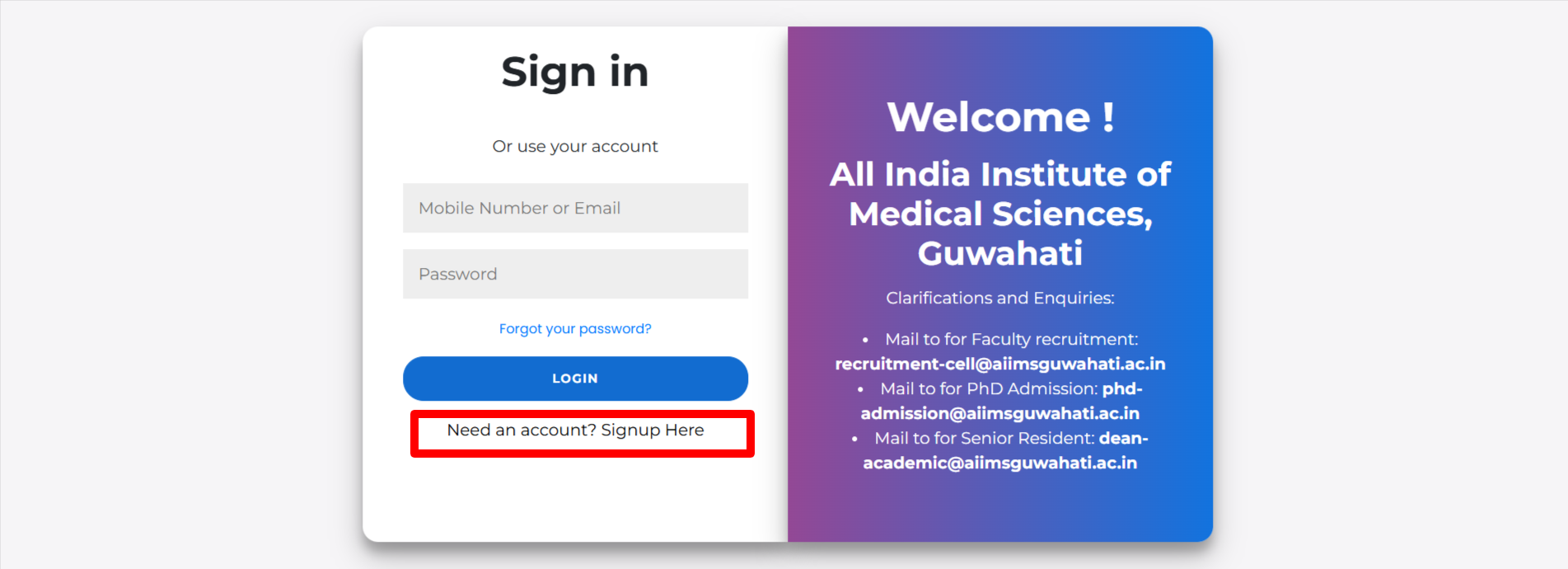 - अब आपके सामने कुछ इस तरह का लॉगिन पेज खुलकर आएगा यहाँ पर आपको Need an account? Signup Here के ऑप्शन पर क्लिक करना है।