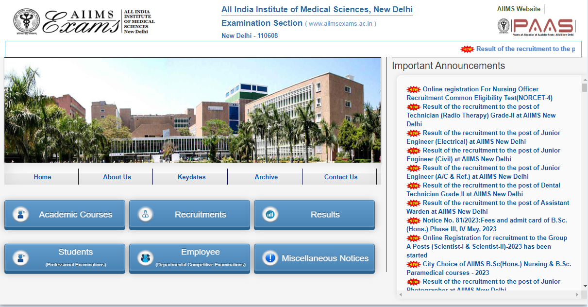| Name of the Institute | All India Institute of Medical Science, (AIIMS) |