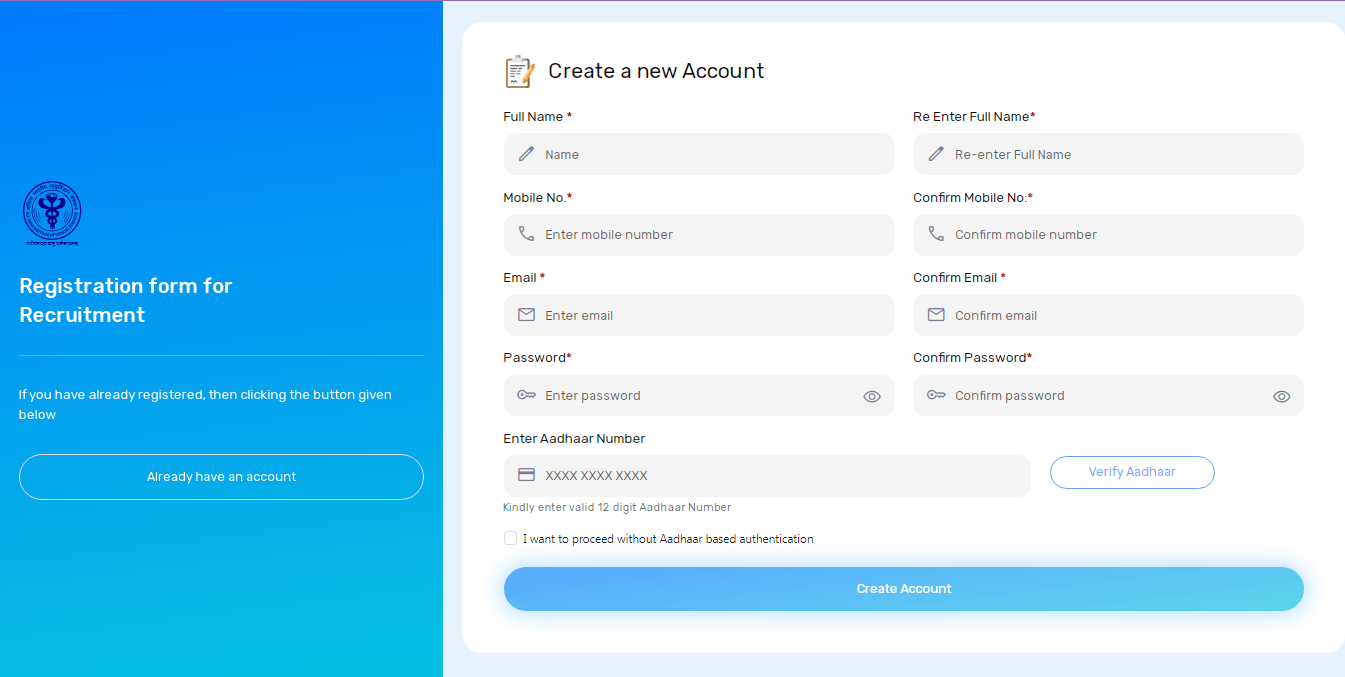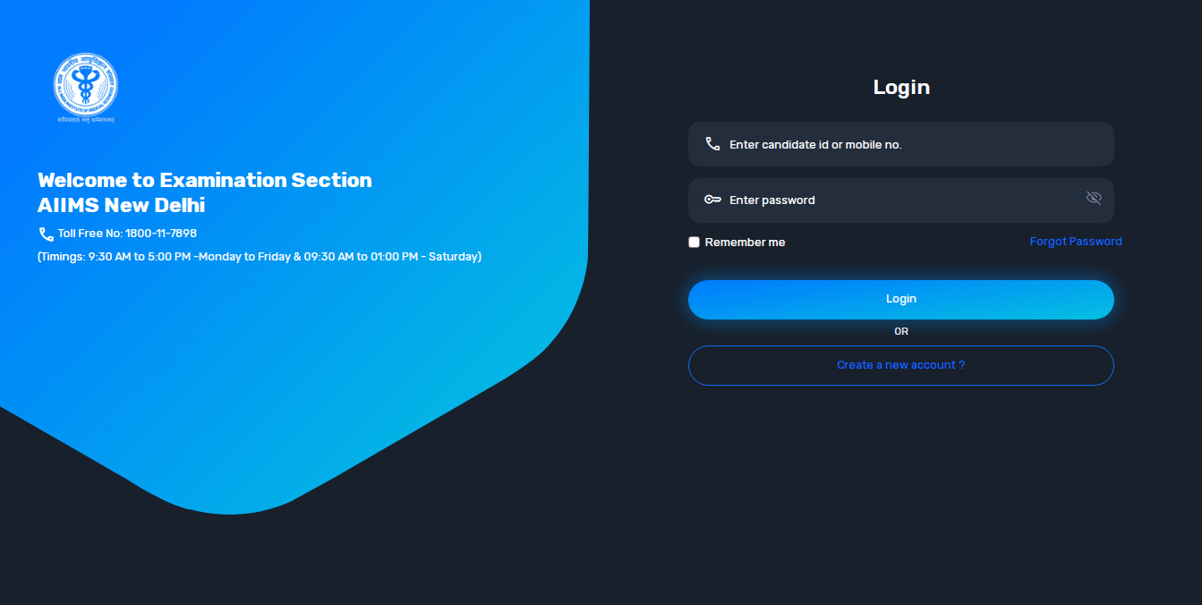 स्टेप 2 – पोर्टल मे लॉगिन करके AIIMS NORCET 9 Nursing Officer Recruitment 2025 मे