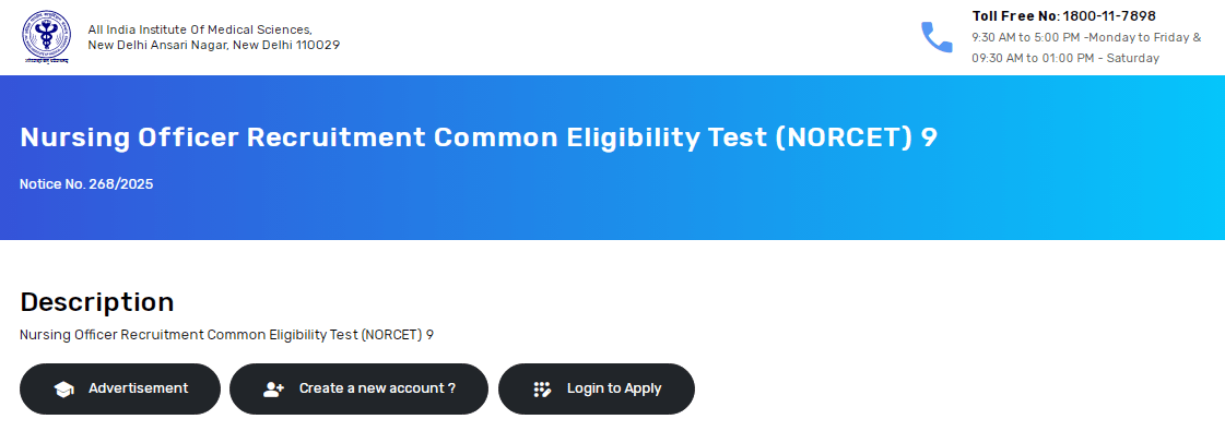 | Name of the Article | AIIMS NORCET 9 Nursing Officer Recruitment 2025 |