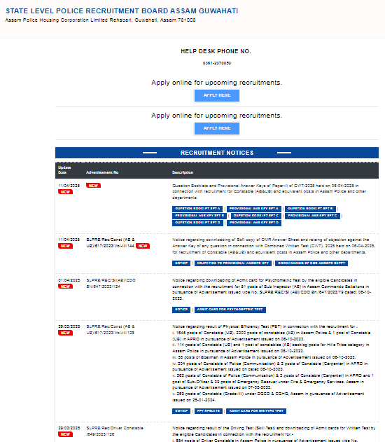 | Name of the Board | OFFICE OF THE CHAIRMAN, STATE LEVEL POLICE RECRUITMENT BOARD, ASSAM REHABARI, GUWAHATI |