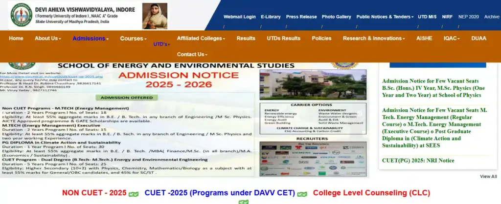 - Devi Ahilya Vishwavidyalaya (DAVV), Indore