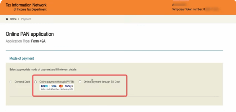 स्टेप 2 – टोकन नंबर प्राप्त करने के बाद माईनर पैन कार्ड हेतु अप्लाई करें