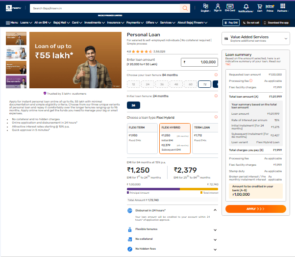 | Dirct Link To Apply Online For Bajaj Finance Personal Loan | Apply Now |