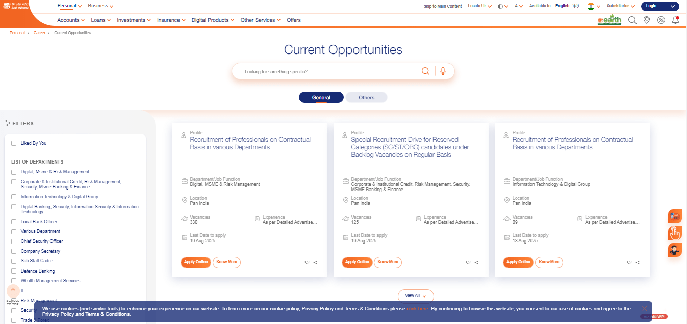 | Deputy Manager : Digital Product – CBDC | Min.: 26 Max.: 36 |