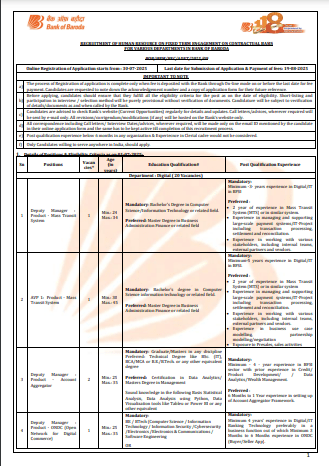 | Name of the Recruitment | RECRUITMENT OF HUMAN RESOURCE ON FIXED TERM ENGAGEMENT ON CONTRACTUAL BASIS FOR VARIOUS DEPARTMENTS IN BANK OF BARODA |