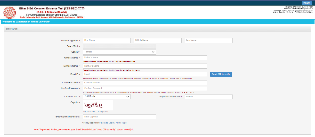 Step 2 – Login & Apply Online For Bihar B.Ed CET Admission 2025