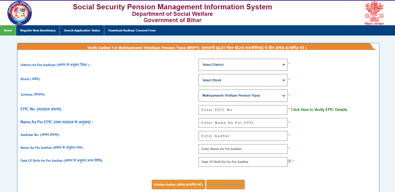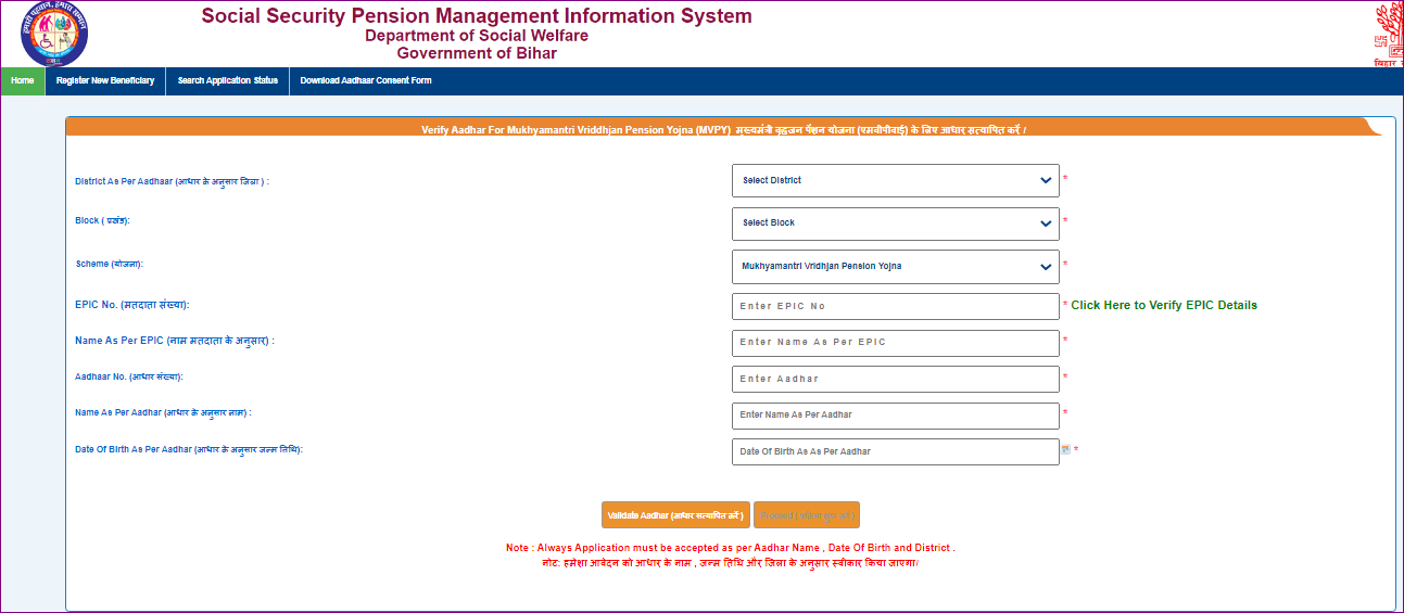 | विभाग का नाम | सामाजिक सुरक्षा विभाग, बिहार सरकार |