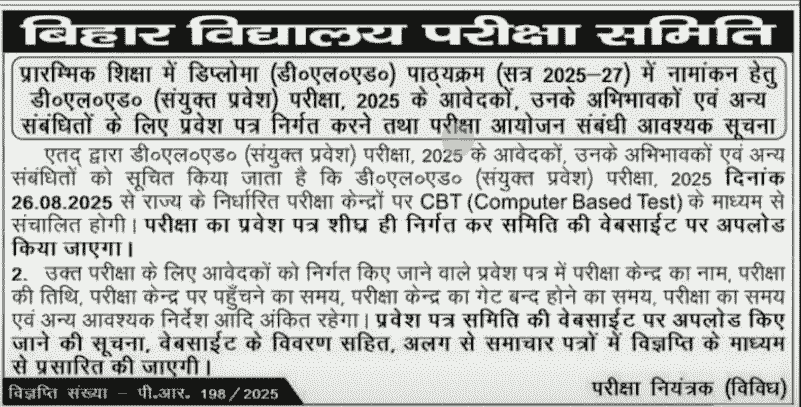 | Bihar Deled Entrance Exam 2025 Notice | Download |