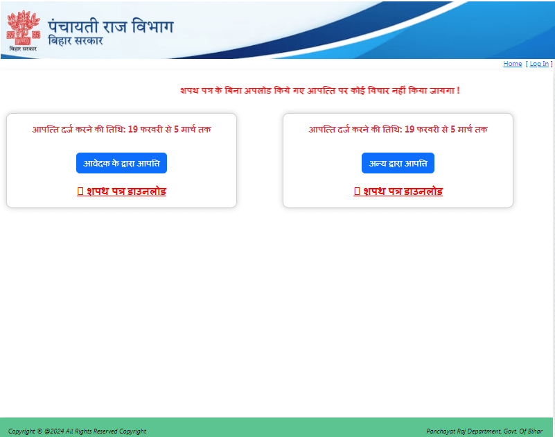 | Bihar Gram Kachahari Sachiv Grievance Form 2025 Starts From | 19th February, 2025 |