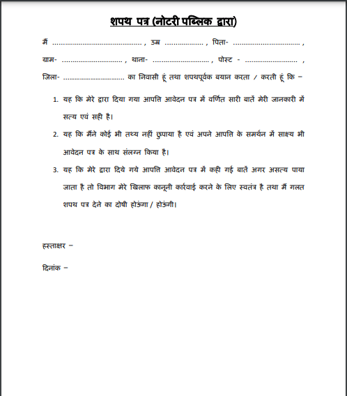 - सफलतापूर्वक आपत्ति फॉर्म भरने के बाद आपको 🌐 शपथ पत्र डाउनलोड के विकल्प पर क्लिक करना होगा,