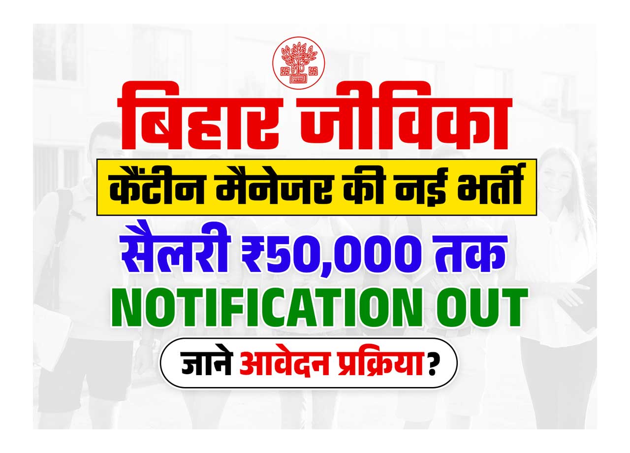 बिहार जीविका कैंटीन मैनेजर की नई भर्ती जारी, हर महिने ₹ 20 हजार से लेकर ₹ 50 हजार की मिलेगी सैलरी, जाने क्या है पूरी भर्ती, आवेदन प्रक्रिया और अप्लाई करने की लास्ट डेट – Bihar Jeevika Canteen Manager Vacancy 2025?
