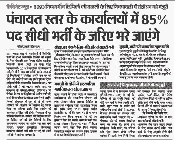 यह बिहार राज्य कर्मचारी चयन आयोग (BSSC) और पंचायती राज विभाग के माध्यम से होगी।