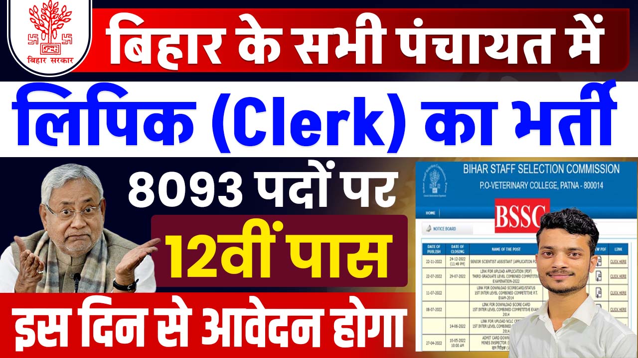 Bihar Panchayati Raj Clerk Vacancy 2025: बिहार सरकार ने ग्राम पंचायतों के प्रशासनिक कार्यों को मजबूती प्रदान करने के उद्देश्य से Bihar Panchayati Raj Clerk Vacancy 2025 की घोषणा की है। इस भर्ती के अंतर्गत 8298 पदों पर Lower Division Clerk (LDC) की नियुक्ति की जाएगी। आपको बता दे की यह एक सरकारी स्थायी नौकरी है जो कि बिहार राज्य कर्मचारी चयन आयोग (BSSC) के माध्यम से आयोजित की जाएगी। 12वीं पास उम्मीदवारों के लिए यह एक सुनहरा अवसर है।