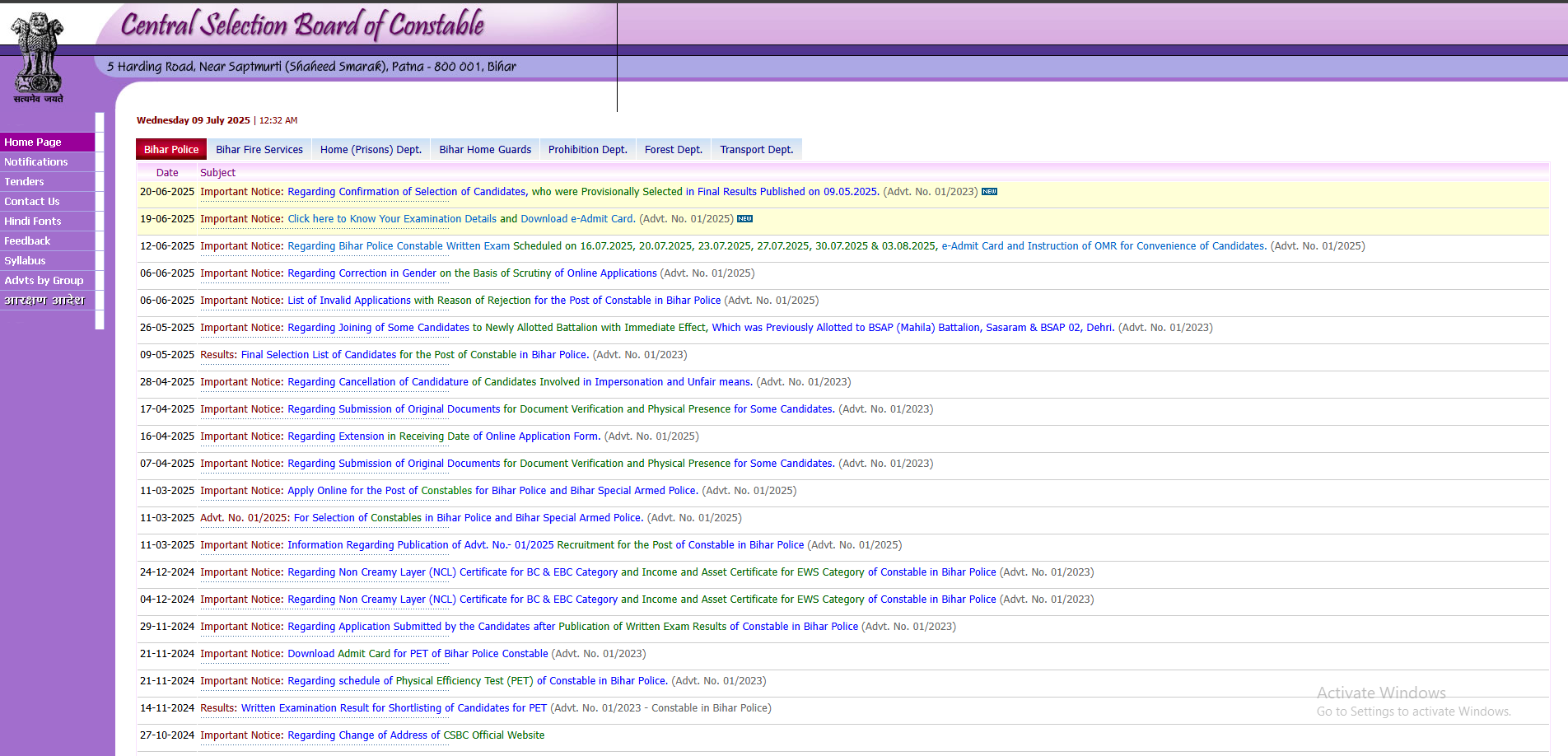 - होम – पेज पर आने के बाद आपको Advt. No. 02/2025: For Selection of Driver Constables in Bihar Police and Bihar Special Armed Police (Advt. No. 02/2025 ) ( आवेदन लिंक 21 जुलाई, 2025 के दिन सक्रिय किया जाएगा ) का विकल्प मिलेगा जिस पर आपको क्लिक करन होगा,