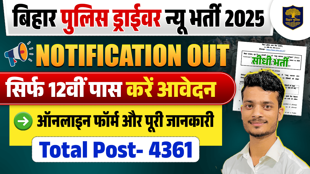 अपने इस आर्टिकल मे हम, आप सभी योग्य आवेदको का स्वागत करना चाहते है जो कि, बिहार पुलिस मे कॉन्स्टेबल ड्राईवर के पद पर नौकरी प्राप्त करना चाहते है औऱ नई भर्ती के निकलने का इंतजार कर रहे है उन्हें इस आर्टिकल की मदद से विस्तार से केंद्रीय चयन पर्षद ( सिपाही भर्ती ) द्धारा जारी Bihar Police Constable Driver Vacancy 2025 की जानकारी प्रदान करेगें जिसके लिए आपको ध्यान से इस आर्टिकल को पढ़ना होगा।