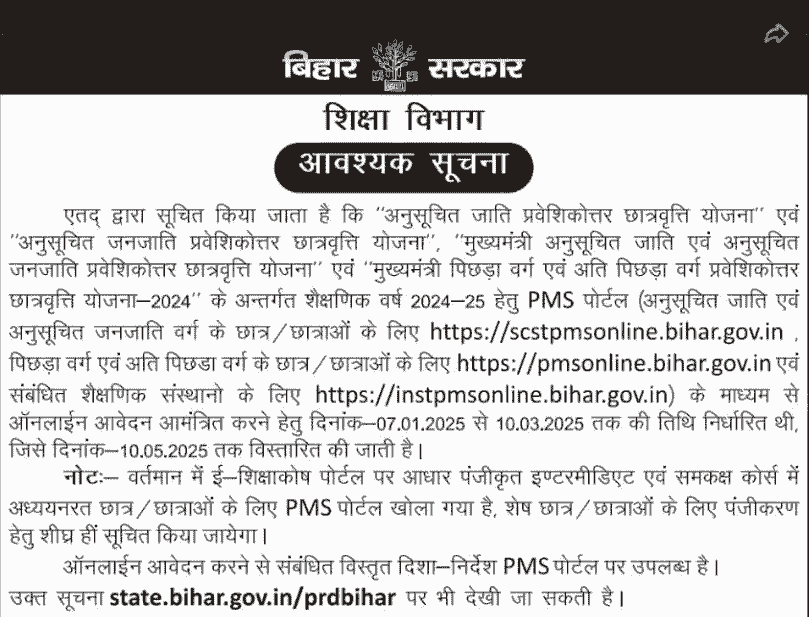 सत्र 2025 – 26 के लिए बिहार पोस्ट मैट्रिक स्कॉलरशिप हेतु शुरु ?