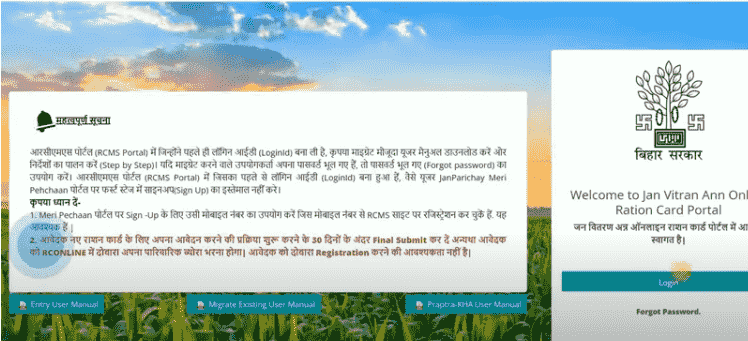 स्टेप 2 – पोर्टल मे लॉगिन करके Bihar Ration Card Se Naam Kaise Hataye