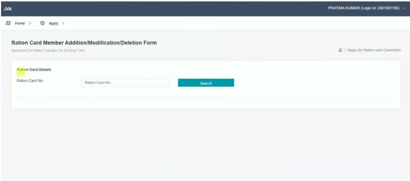 - अब यहां पर आपको जिर राशन कार्ड से नाम कटवाना / हटाना है उसे दर्ज करना होगा और सर्च के विकल्प पर क्लिक करना होेगा,
