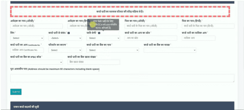 - अब यहां पर आपको घर की महिला मुखिया सदस्य की जानकारी को दर्ज करना होगा औऱ Submit के विकल्प पर क्लिक करना होेगा,