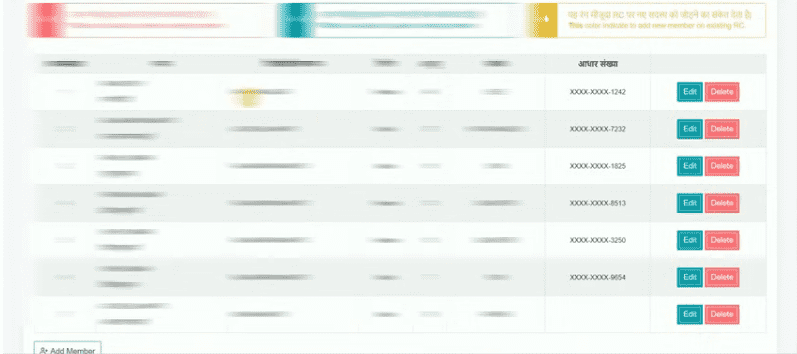 - अब यहां पर आप जिस सदस्य का नाम राशन कार्ड से डिलीट करना चाहते है उसके नाम के आगे दिए गये Delete के विकल्प पर क्लिक करना होगा,