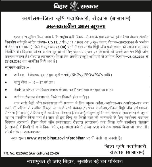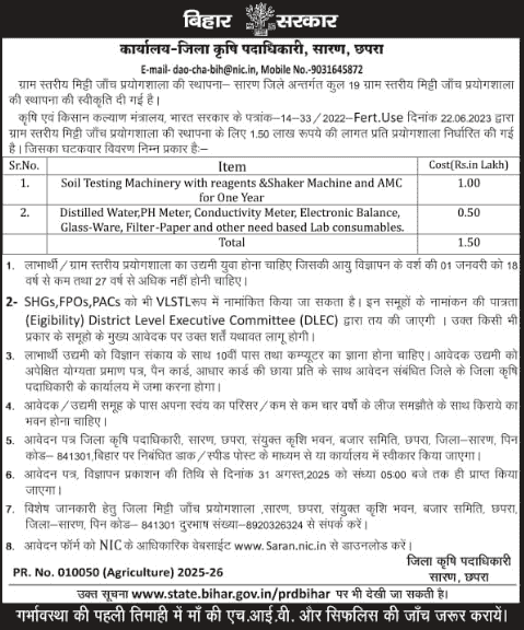 Vacancy Details of Bihar Soil Testing Lab Subsidy Notification 2025?