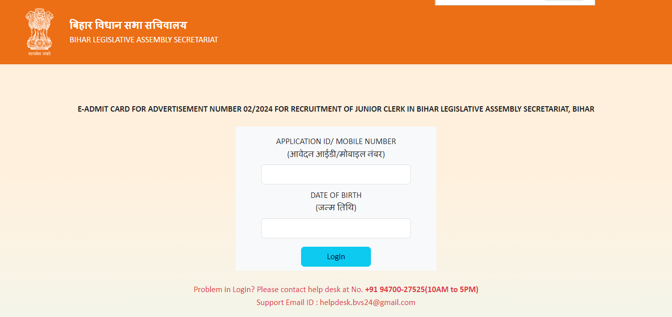 | Bihar Vidhan Sabha Junior Clerk Admit Card 2025 Release On | 18th July, 2025 |