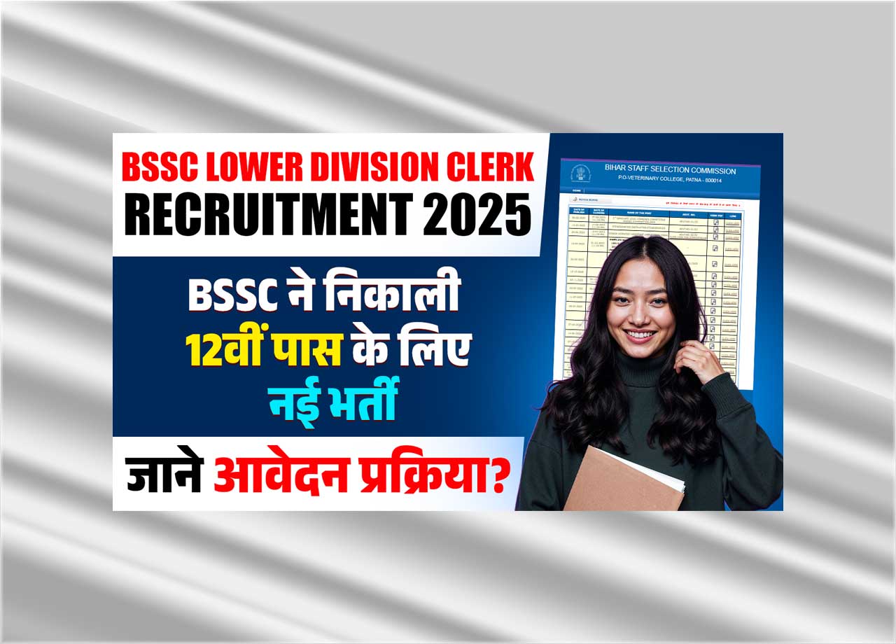 BSSC Lower Division Clerk Recruitment 2025: 12वीं पास वे सभी भूतपूर्व पंजीकृत सैनिक जो कि, निम्न वर्गीय लिपिक ( Lower Division Clerk / LDC ) व कल्याण व्यवस्थापक के पद पर नौकरी प्राप्त करना चाहते है उनके लिए बिहार कर्मचारी चयन आय़ोग द्धारा नई भर्ती अर्थात् BSSC Lower Division Clerk Recruitment 2025 को जारी किया गया है जिसकी पूरी – पूरी जानकारी हम, आपको इस आर्टिकल मे प्रदान करेगें जिसके लिए आपको धैर्यपूर्वक इस आर्टिकल को पढ़ना होगा ताकि आप पूरी – पूरी जानकारी प्राप्त कर सकें।