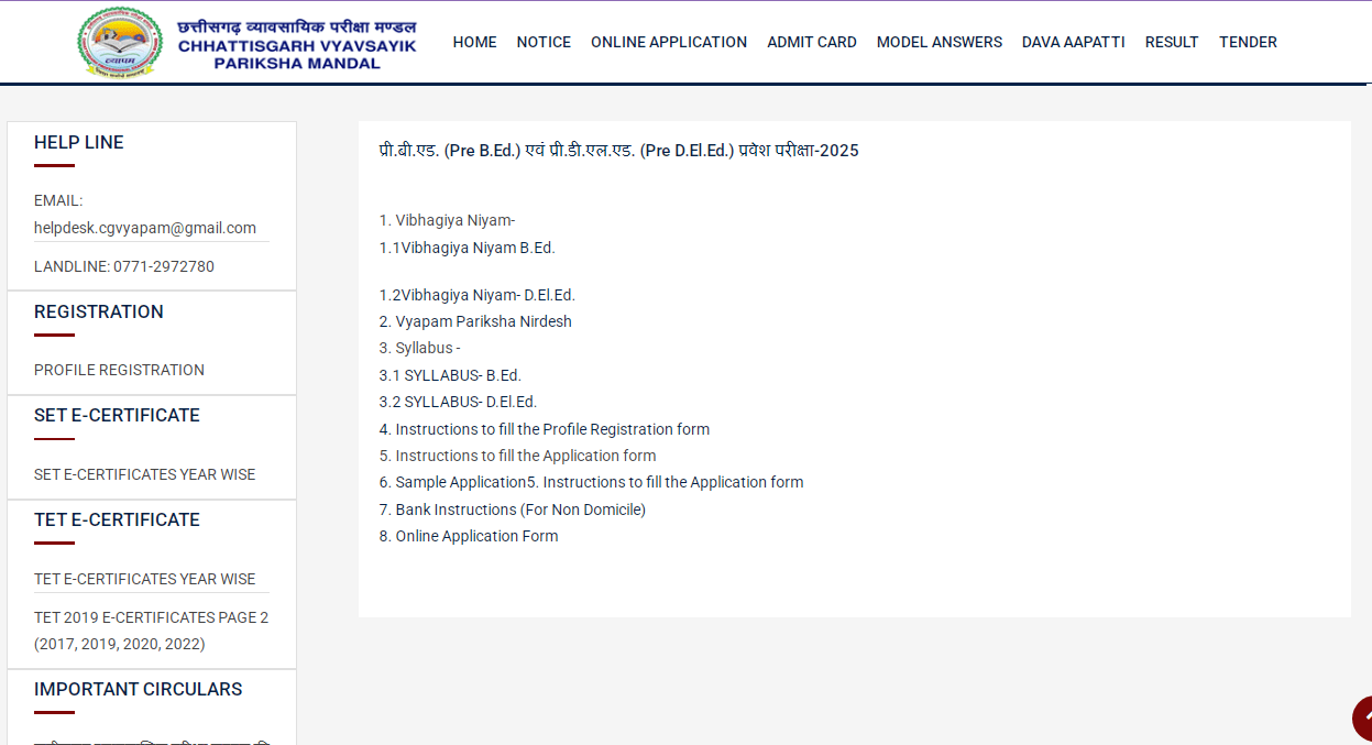 | Name of the Mandal | Chhattisgarh Vyavsayik Pariksha Mandal |