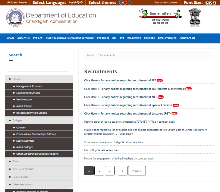 - Chandigarh JBT Teacher Recruitment 2025 मे ऑनलाइन आवेदन करने के लिए सबसे पहले आपको इसके Official Career Page पर आना होगा जो कि, इस प्रकार का होगा –