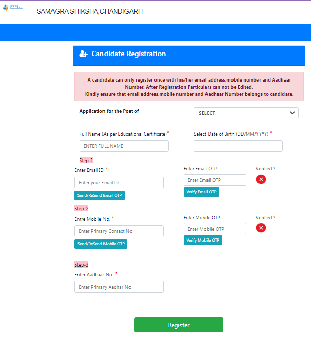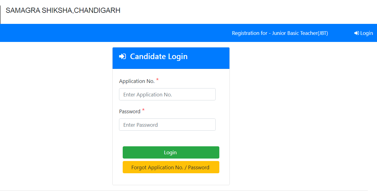 स्टेप 2 – पोर्टल मे लॉगिन करके Chandigarh JBT Teacher Recruitment 2025 मे ऑनलाइन अप्लाई करें