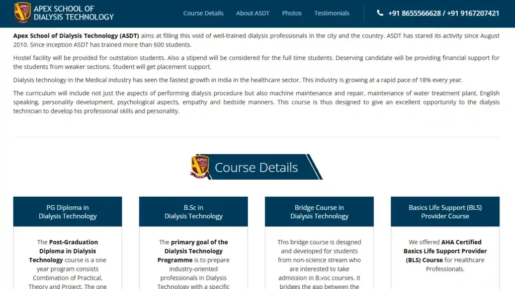 Diploma/Certificate Courses: Advanced Dialysis Techniques, Renal Care, Infection Control in Dialysis.