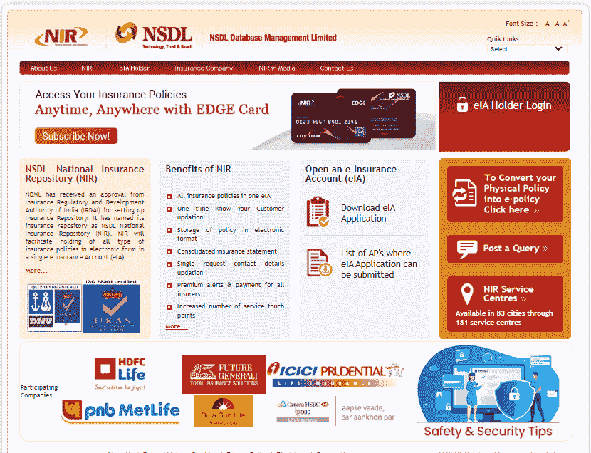 - NDSDL – NIR (National Securities Depository Limited – Insurance Repository)