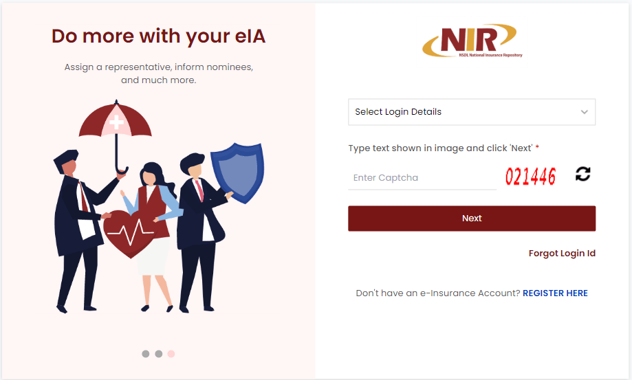 स्टेप 2 – पोर्टल मे लॉगिन करके अपना E-Insurance Account खोलें
