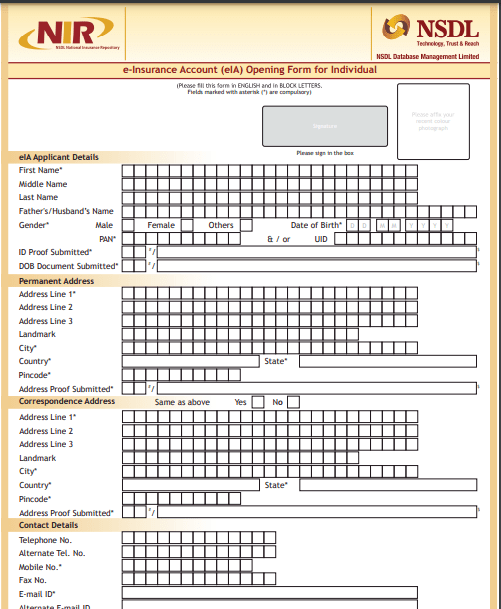 | Download Application Form of E-Insurance Account | ई बीमा खाता का एप्लीकेशन फॉर्म पीडीएफ डाउनलोड करें |