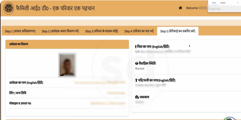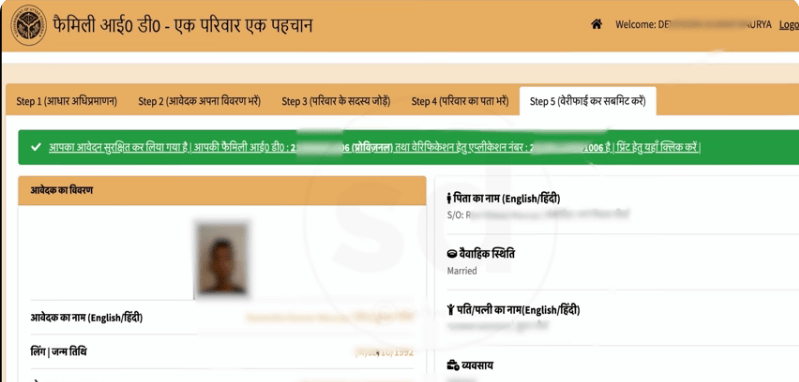 स्टेप 4 – फैमिली आई.डी हेतु अपने एप्लीकेशन को ” वेरिफाई कर सबमिट करें “