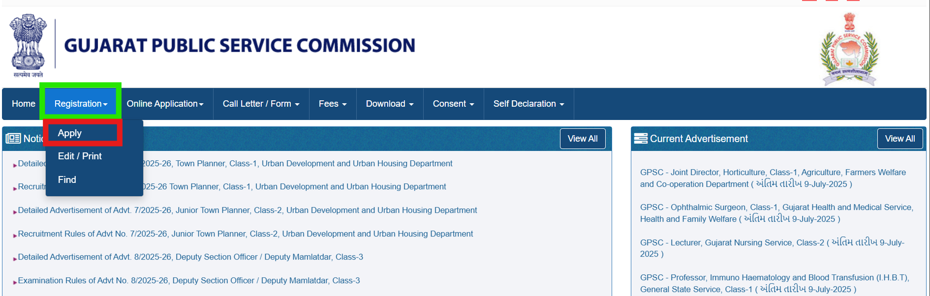 अतः हमारे जो भी इच्छुक उम्मीदवार अपना आवेदन करना चाहते हैं उन्हे भर्ती के लिए निर्धारित की गई अंतिम तिथि से पहले GPSC Recruitment Portal की आधिकारिक वेबसाइट https://gpsc-ojas.gujarat.gov.in/ पर जाकर अपना ऑनलाइन आवेदन फॉर्म भरना होगा।