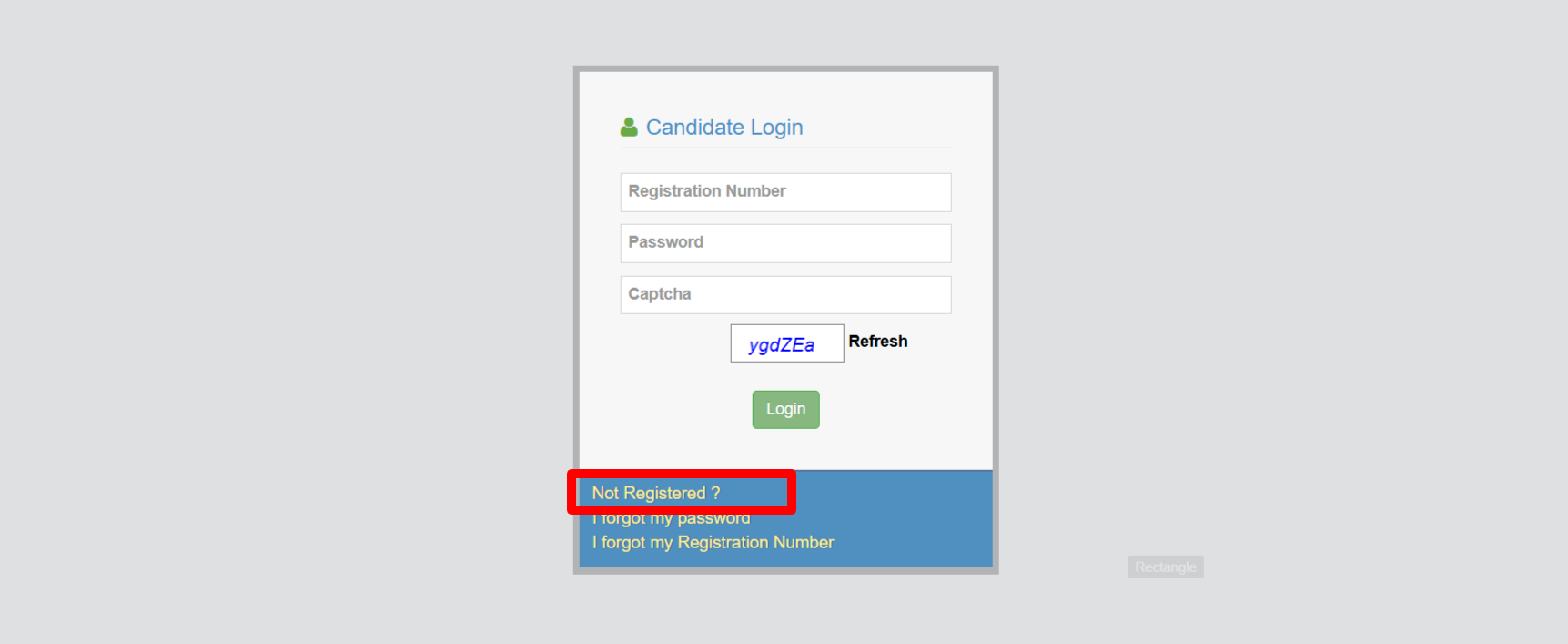 - अब आपके सामने कुछ इस तरह का लॉगिन फॉर्म खुलकर आएगा यहाँ पर आपको नीचे Not Registered ? का ऑप्शन देखने को मिलेगा आपको इस ऑप्शन पर क्लिक करना है।