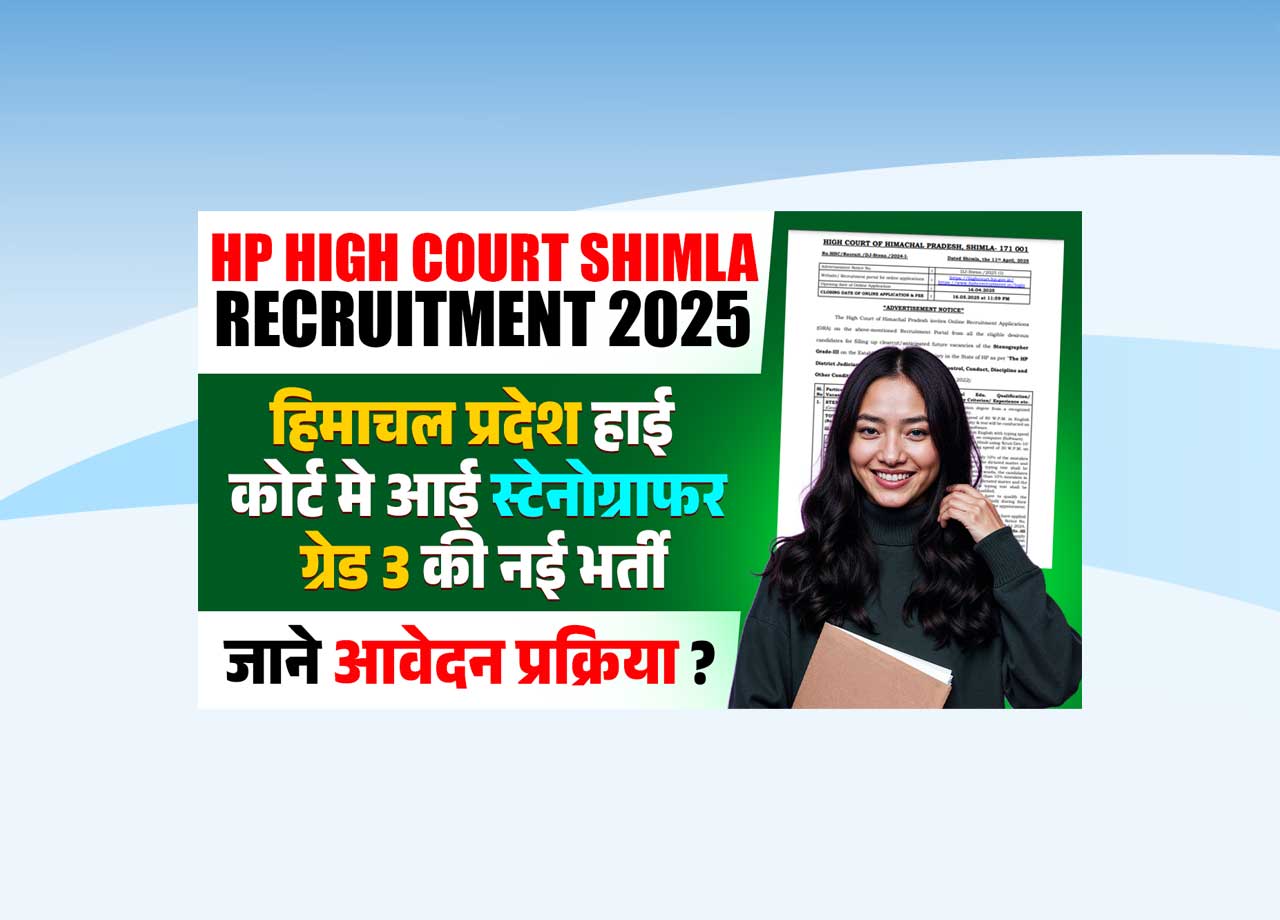 हिमाचल प्रदेश हाई कोर्ट मे आई स्टेनोग्राफर ग्रेड 3 की नई भर्ती, जाने क्या है पूरी भर्ती, आवेदन प्रक्रिया और अप्लाई करने की लास्ट डेट – HP High Court Shimla Recruitment 2025?