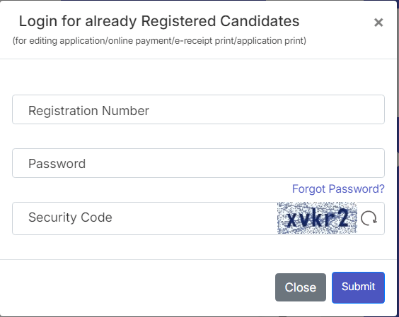 - अब यहां पर आपको Login For Already Registered Candidates का विकल्प मिलेगा जिस पर आपको क्लिक करना होगा,