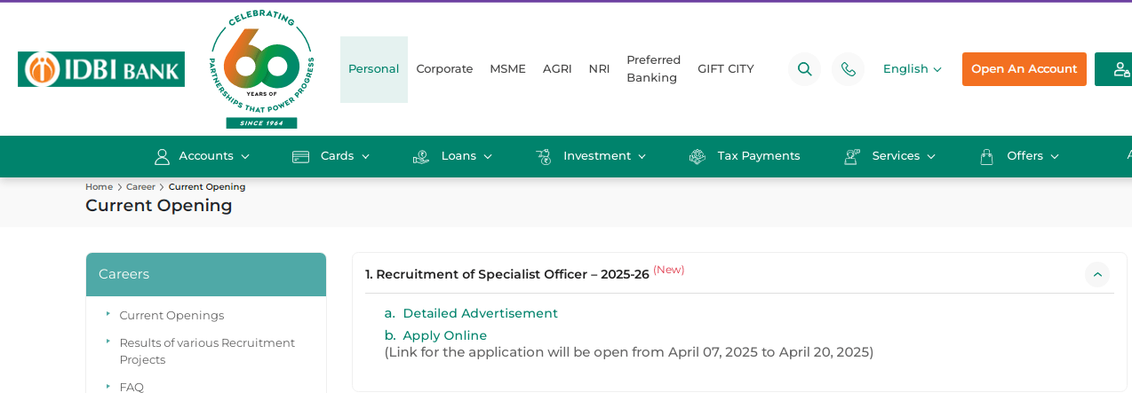 | Name of the Article | IDBI Bank SO Recruitment 2025 |