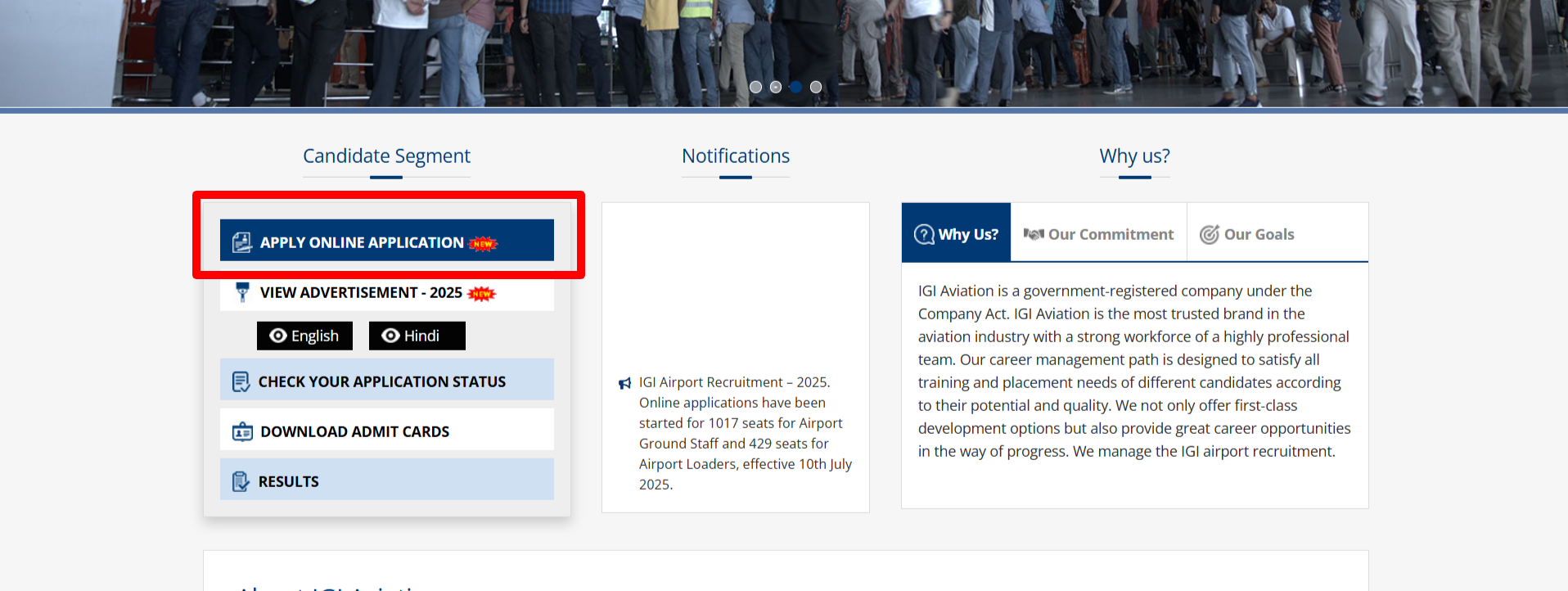 हमारे देश के जो भी इच्छुक उम्मीदवार IGI Aviation Airport Ground Staff and Loader Bharti 2025 के तहत अपना ऑनलाइन आवेदन करना चाहते हैं, वह हमारे द्वारा नीचे बताई गई आवेदन प्रक्रिया फॉलो कर सकते हैं –
