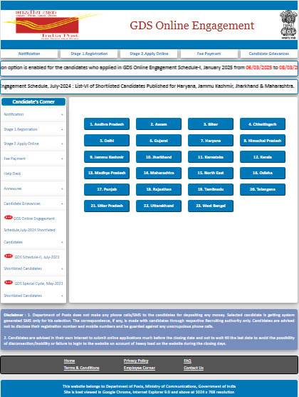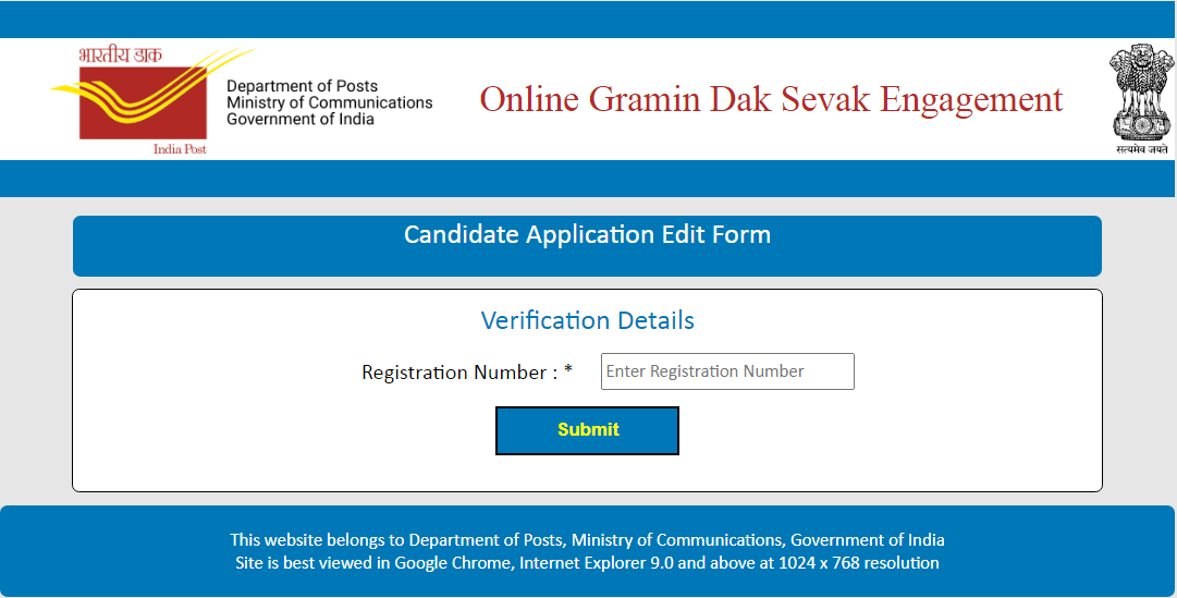 - India Post GDS Recruitment 2025 मे Correction / Edit करने के लिए सबसे पहले आपको इसकी Official Website के होम – पेज पर आना होगा जो कि, इस प्रकार का होगा –