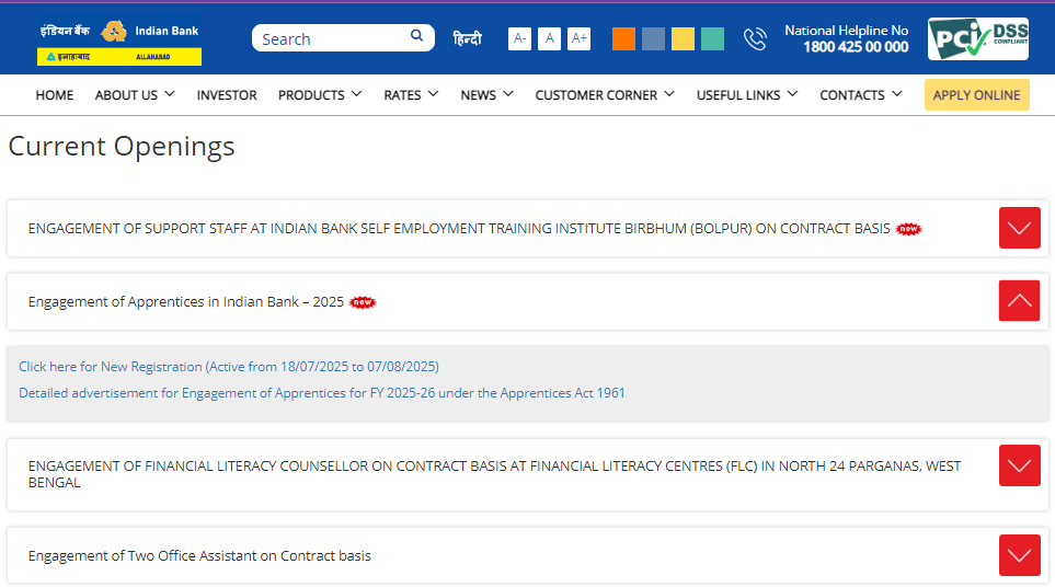- अब इस करियर पेज पर आने के बाद आपको Engagement of Apprentices in Indian Bank – 2025 का टैब मिलेगा,