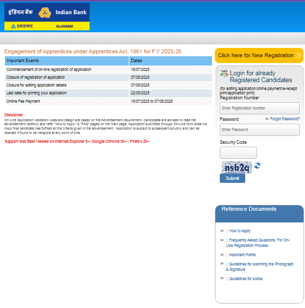स्टेप 2 – पोर्टल मे लॉगिन करके Indian Bank Apprentice Recruitment 2025 मे ऑनलाइन अप्ला्ई करें