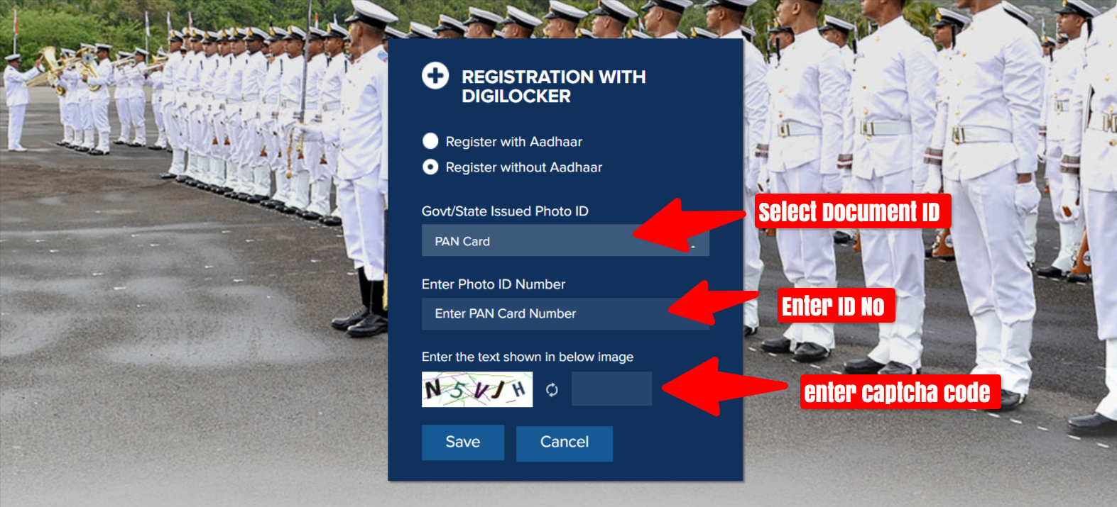 - इसके बाद आपको Documents का ID No। और कैप्चा कोड एंटर करके Save के ऑप्शन पर क्लिक करना है।