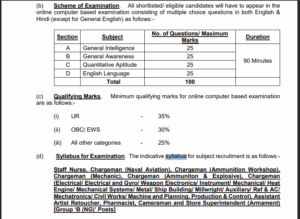 भारतीय नौसेना सिविलियन ग्रुप B परीक्षा के सम्पूर्ण सिलेबस निम्नलिखित है