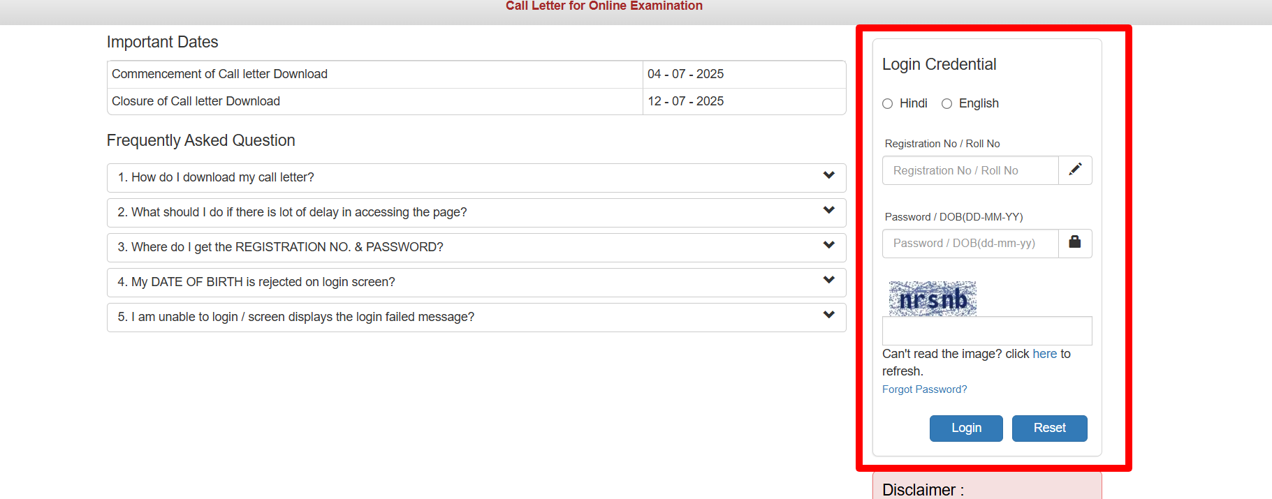 - अपना एड्मिट कार्ड डाउनलोड करने के लिए आपको सबसे पहले हमारे द्वारा दिये गए डाइरैक्ट लिंक पर क्लिक करना होगा।