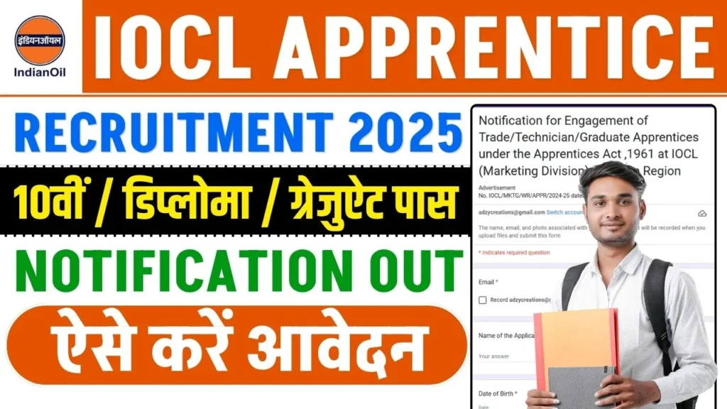 10वीं / 12वीं / डिप्लोमा / ग्रेजुऐशन पास हेतु IOCL की नई अप्रैंटिस भर्ती हुई जारी, जाने क्या है पूरी भर्ती और आवेदन प्रक्रिया – IOCL Apprentice Recruitment 2025?