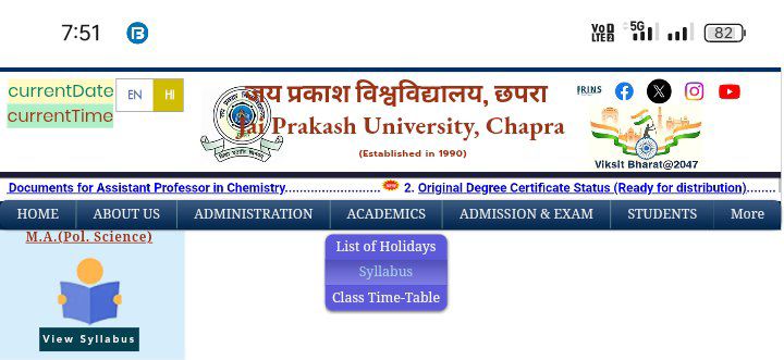 - Step 1 – सबसे पहले छात्रों को JP UG Admission Official Website को विजिट करने होंगे।